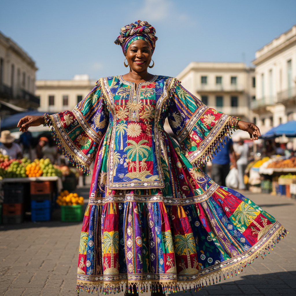 Haitian woman smiling outdoors in bright sunlight, warm community setting representing NatTransfer customers